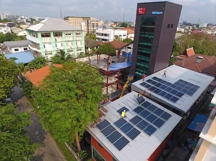 ระบบ Ongrid 10 KW ติดตั้งที่อาคาร E และ F โดยใช้แผง PV ยี่ห้อ Jinko 250 W จำนวน 40 แผง และใช้ ABB string inverters PVI - 10.0/12.5-TL-OUTD 10 to 12.5 KW