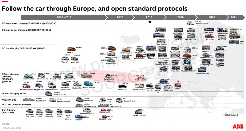ในการเลือกซื้อ EV Charger บางรุ่น ผู้ซื้อต้องระบุ ประเภทของหัวจ่ายด้วย ซึ่งประเภทของหัวจ่ายนั้นขึ้นอยู่กับยี่ห้อ และรุ่นของรถ EV ว่ารองรับมาตรฐานหัวชาร์จแบบไหน จากรูปจะเห็นมาตรฐานหัวชาร์จหลักๆในท้องตลาดโซนยุโรป(ณ ปี 2018) จะมีอยู่ 3 แบบหลักๆ คือ AC(Type1/Type2), DC Chademo และ DC CCS