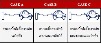 จะเห็นว่าใน Case B จะเป็นรูปแบบที่ยืดหยุ่นที่สุดเนื่องจากผู้ใช้งานไม่ต้องกังวลว่า สายเคเบิ้ลที่ติดมากับรถไฟฟ้า หรือแหล่งจ่ายพลังงาน จะสามารถนำไปเสียบเข้ากับอีกฝั่งได้หรือไม้ โดยผู้ใช้งานเพียงหาสายเคเบิ้ลที่มีหัวต่อทั้งสองด้านรองรับกับอุปกรณ์อื่นๆ ที่ผู้ใช้งานมีอยู่ก็เพียงพอแล้ว