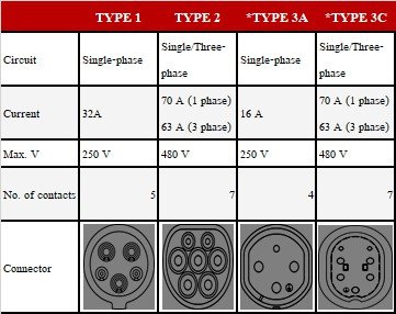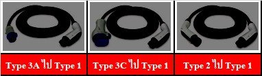 ตารางเปรียบเทียบหัวต่อสำหรับการชาร์จรถไฟฟ้าใน Mode 3